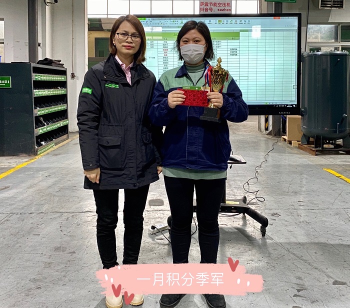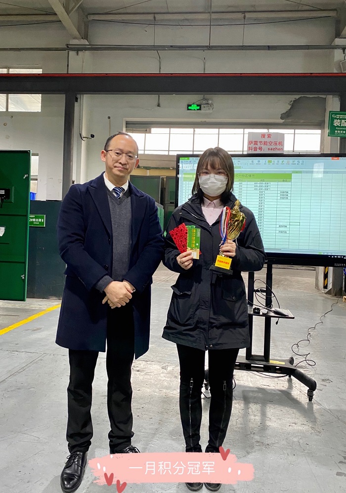 薩震節能空壓機月度積分獎勵頒獎進行中,此次總共有36名薩震員工獲得獎品、獎金,抽獎券,我們要向他們學習!