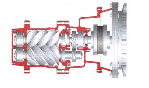 我們以螺桿空壓機為例,螺桿壓縮機的工作循環可分為進氣,壓縮和排氣三個過程。隨著轉子旋轉,每對相互嚙合的齒相繼完成相同的工作循環。