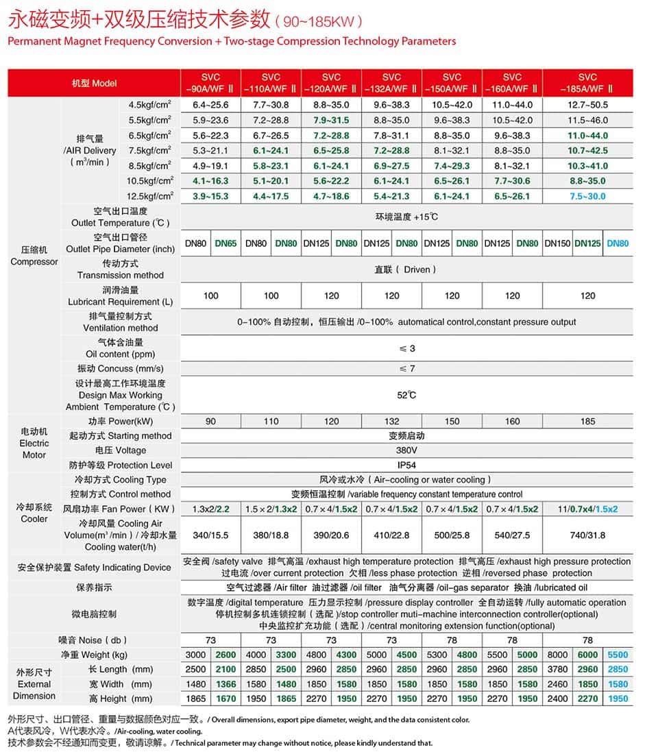 | 保養指示 | 空氣過濾器 油過濾器 油氣分離器 換油 | ||||||||||||||||||||||||||||||||||||||||